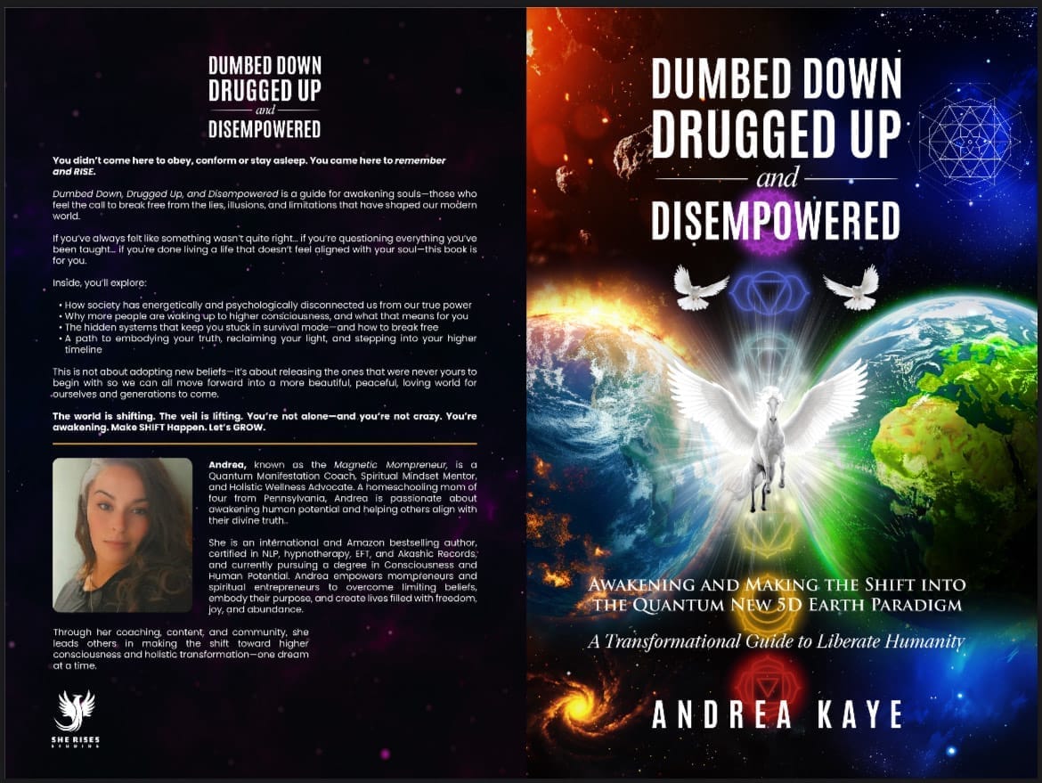 She is an International and Amazon bestselling author, certified in NLP, Hypnotherapy, EFT, Timeline Therapy, Life & Success Coaching, Intuitive Healing, The Akashic Records & The Magnetic Mind Method. Also currently pursuing a degree in Consciousness and Human Potential at MIU. Andrea empowers mompreneurs and spiritual entrepreneurs to overcome limiting beliefs, activate &